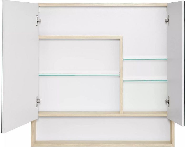 Зеркало-шкаф Акватон Сканди 85 см 1A252302SDB20, 4 петли с плавным доводом, 3 регулируемые стеклянные полки, цвет - белый глянцевый/дуб верона.
