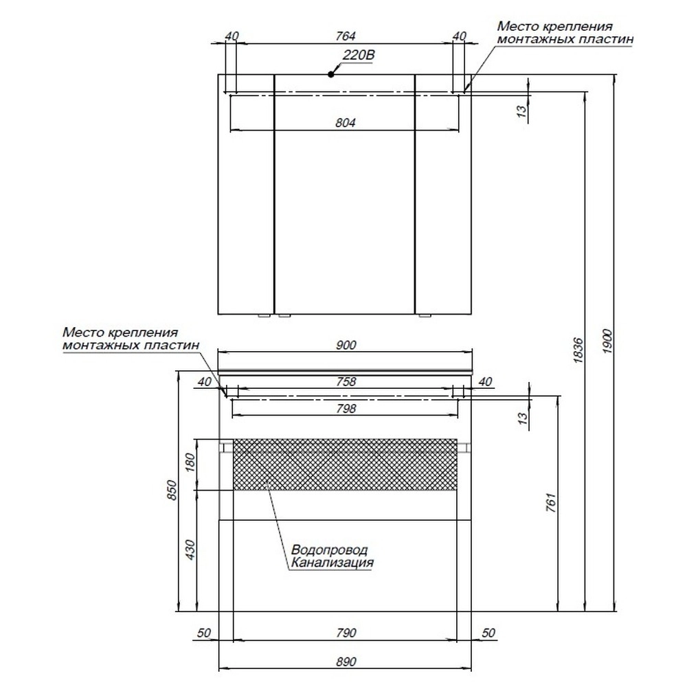 - Модель подвесного типа. На тыльной стороне предусмотрены места для установки монтажных пластин.