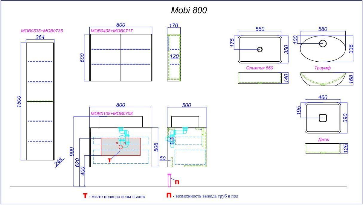 Описание зеркальный шкаф Aqwella MOB0408/MOB0717BS