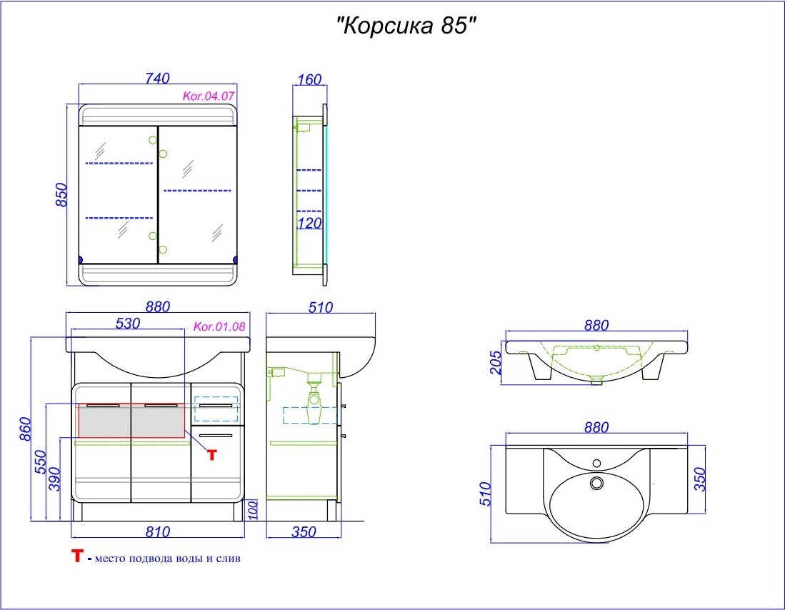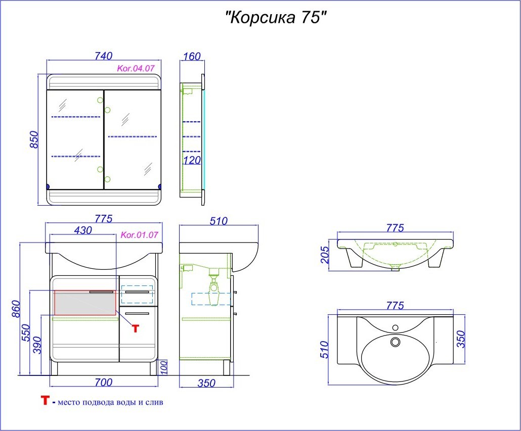 Характеристики зеркальный шкаф Aqwella (Kor.04.07)