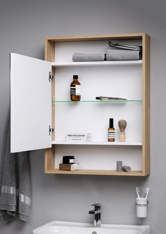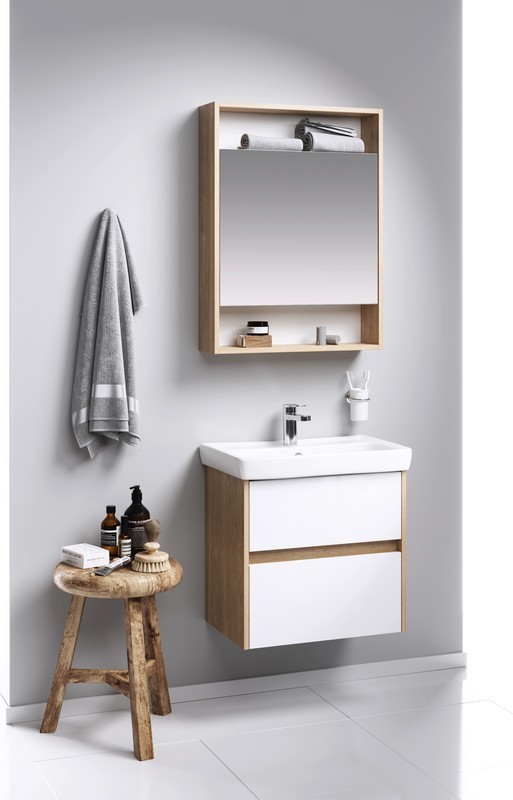 Зеркало-шкаф Aqwella Сити 60 см SIT0406DB, универсальный, с двумя открытыми полками, цвет дуб балтийский.