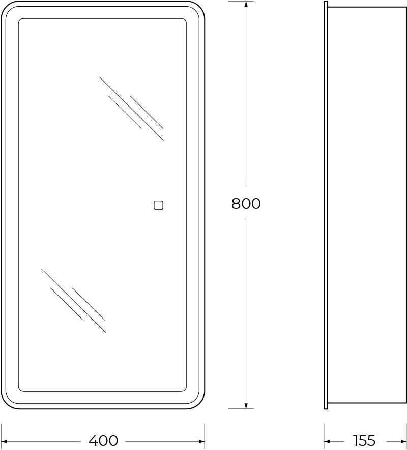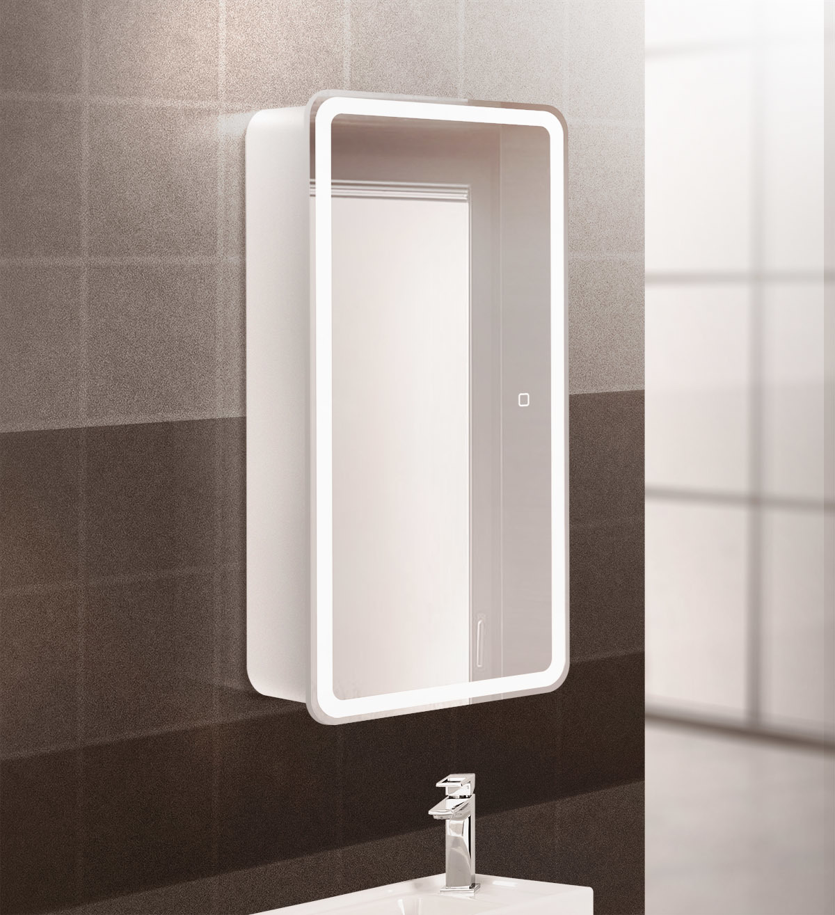 - Дополнительная информация: зеркальный шкаф оснащен встроенной подсветкой по периметру и сенсорным выключателем