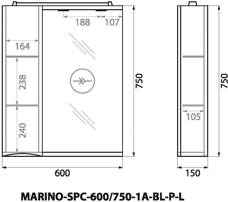 Описание зеркальный шкаф BelBagno MARINO-SPC-600/750-1A-BL-P-L