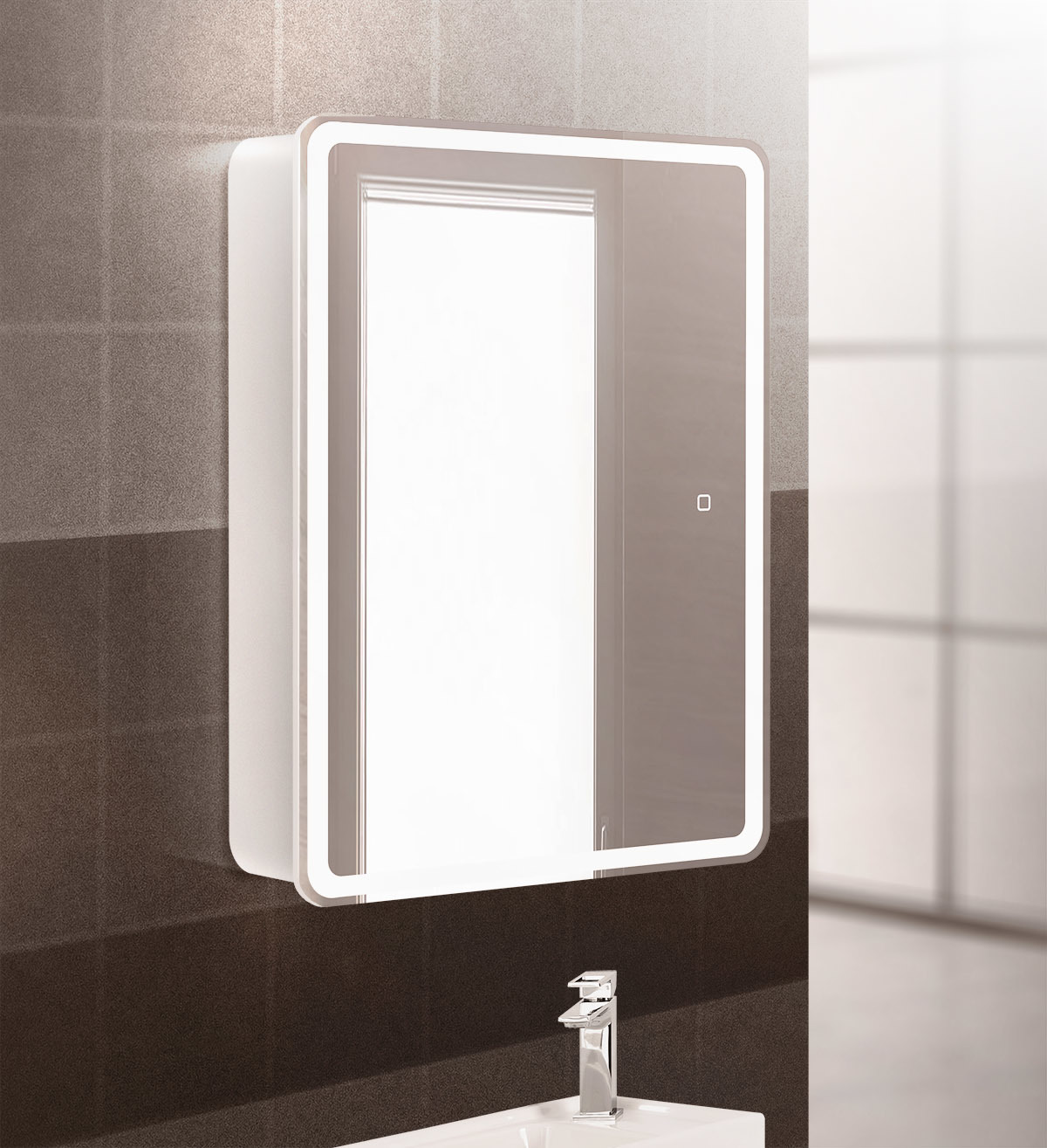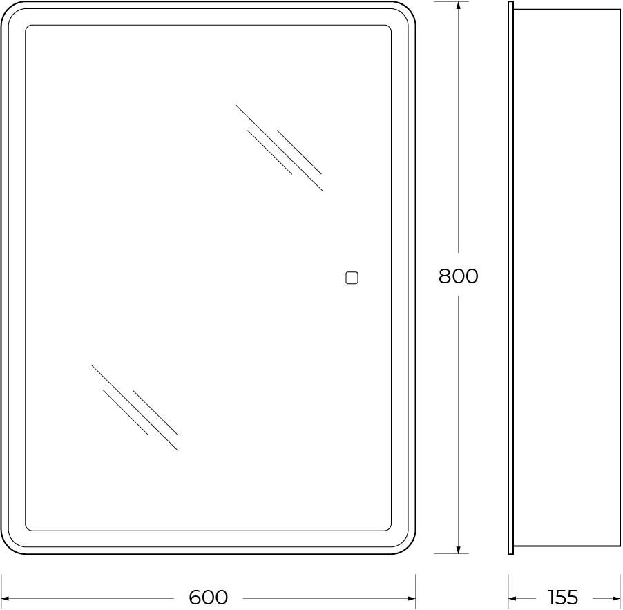 - Дополнительная информация: зеркальный шкаф оснащен встроенной подсветкой по периметру и сенсорным выключателем