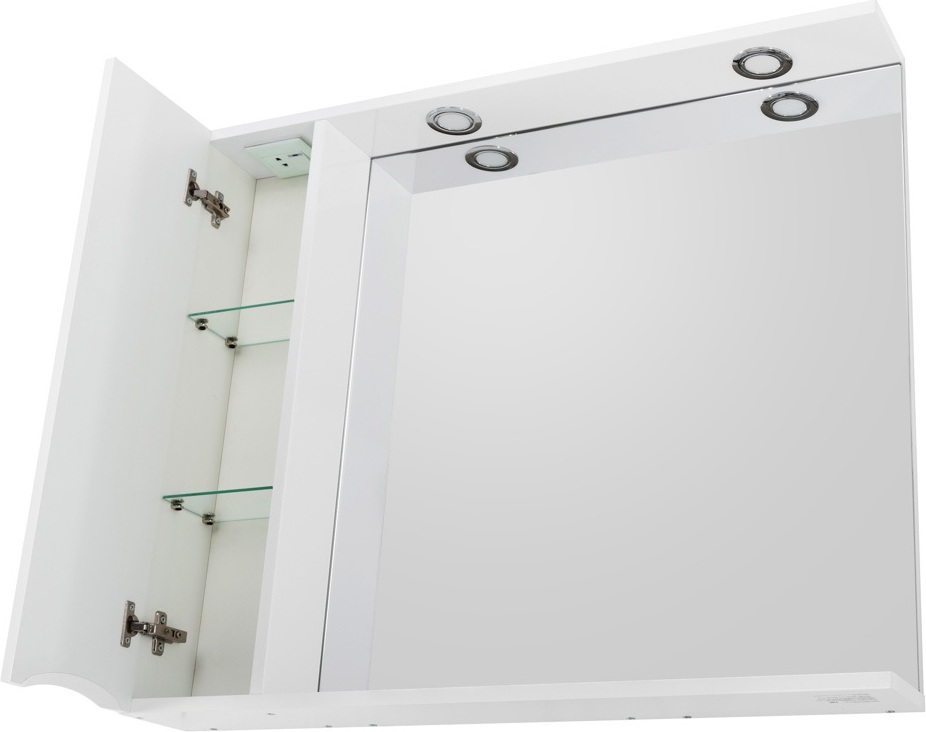 Зеркало-шкаф BelBagno 80 см MARINO-SPC-800/750-1A-BL-P-L, левосторонний, цвет - Bianco Lucido.