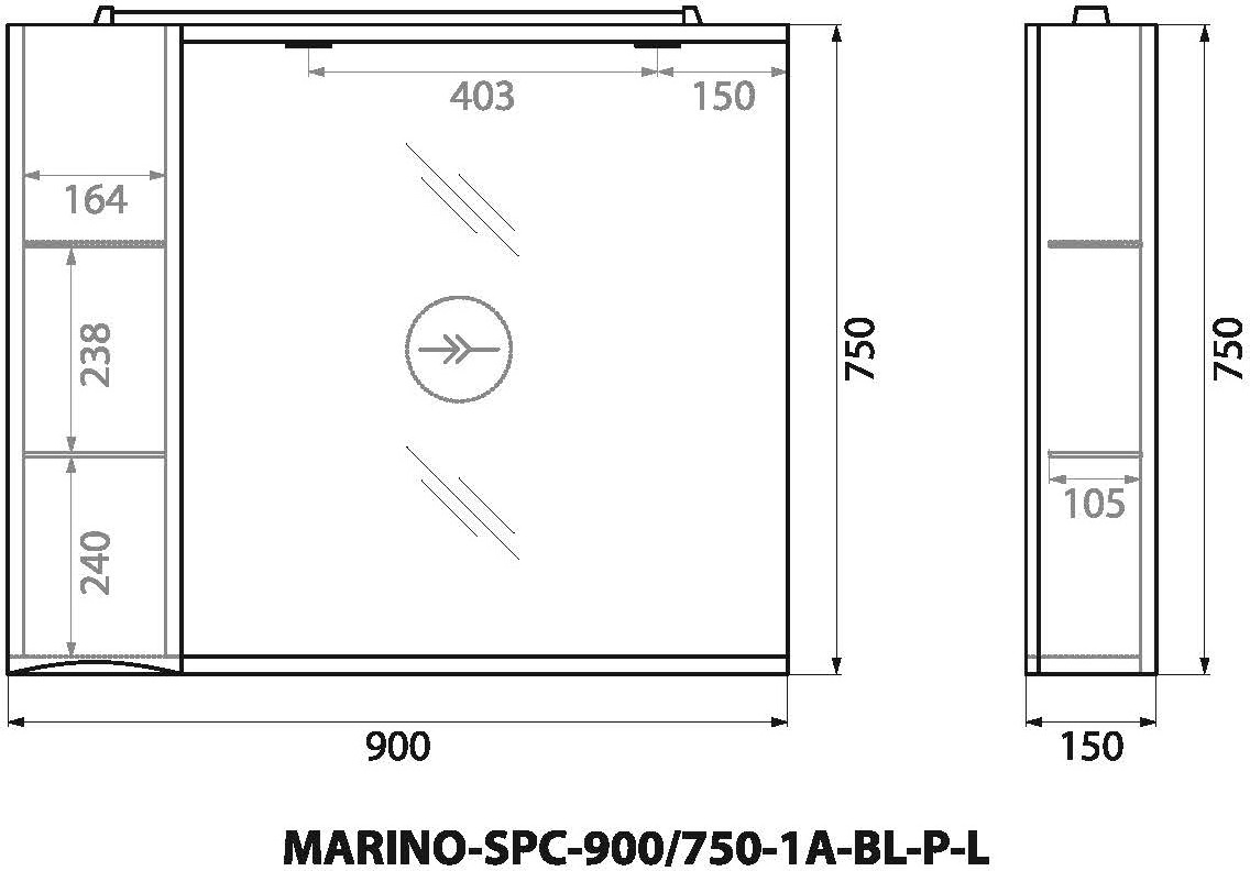 Характеристики зеркальный шкаф BelBagno (MARINO-SPC-900/750-1A-BL-P-L)