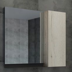 Зеркальное высококачественное полотно с амальгамой на основе серебра. Створка мебельного элемента оснащена петлями с системой плавного закрывания. За дверцей одна горизонтальная полка. Зеркало-шкаф состоит из двух отдельных элементов - зеркала и шкафчика - поэтому универсально, может быть подвешено в правом или левом варианте.