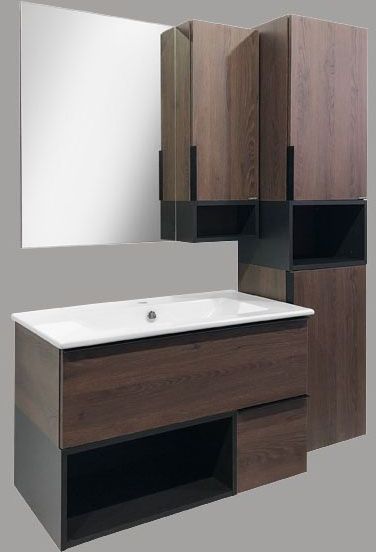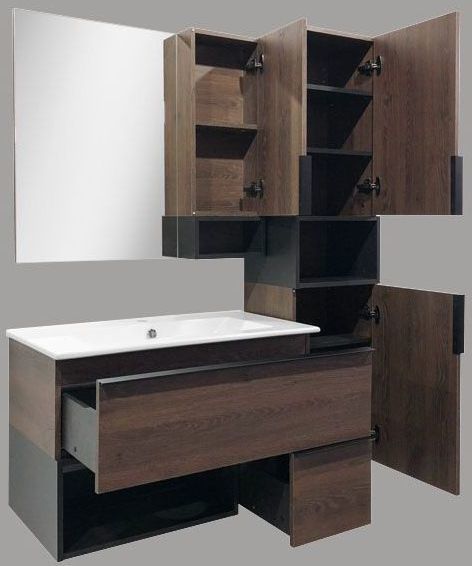 Зеркало-шкаф Comforty Франкфурт 90 см. Цвет дуб шоколадно-коричневый.