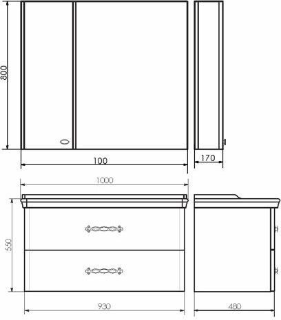 Зеркальное высококачественное полотно с амальгамой на основе серебра. Створка оснащена петлями с плавным закрыванием. За створкой две горизонтальные полки. Высококачественное зеркальное полотно с амальгамой на основе серебра. Зеркало универсальное - может быть подвешено в правом или левом варианте. Отверстие под ручку размечено, но не просверлено.