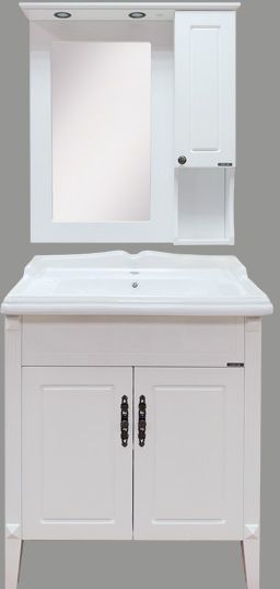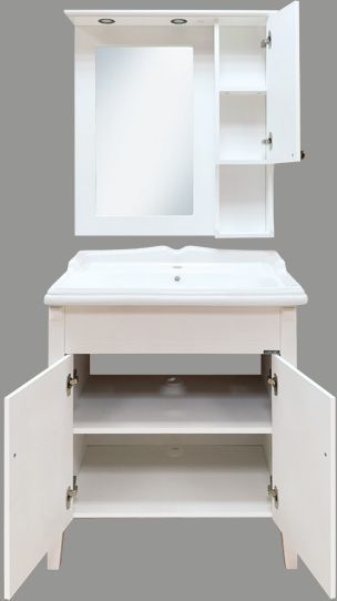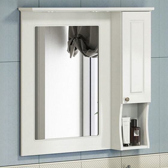 Зеркальное высококачественное полотно с амальгамой на основе серебра. Мебельный элемент и рама окрашены белой глянцевой эмалью.