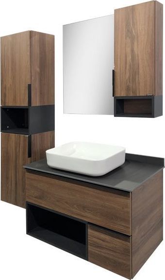 Зеркало-шкаф Comforty Штутгарт 90 см, дуб тёмно-коричневый