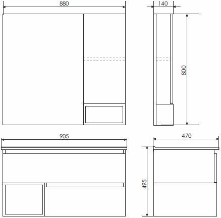 Зеркальное высококачественное полотно с амальгамой на основе серебра. Створка мебельного элемента оснащена петлями с системой Push-to-open (открытие при нажатии). За дверцей одна горизонтальная полка.