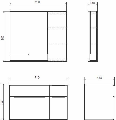 - Габариты (ШхВхГ): 900х800х150 мм