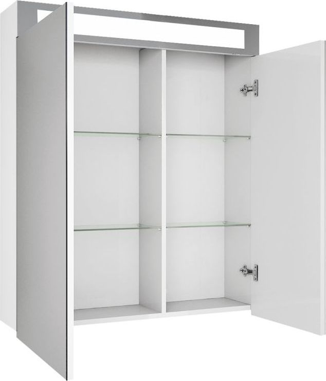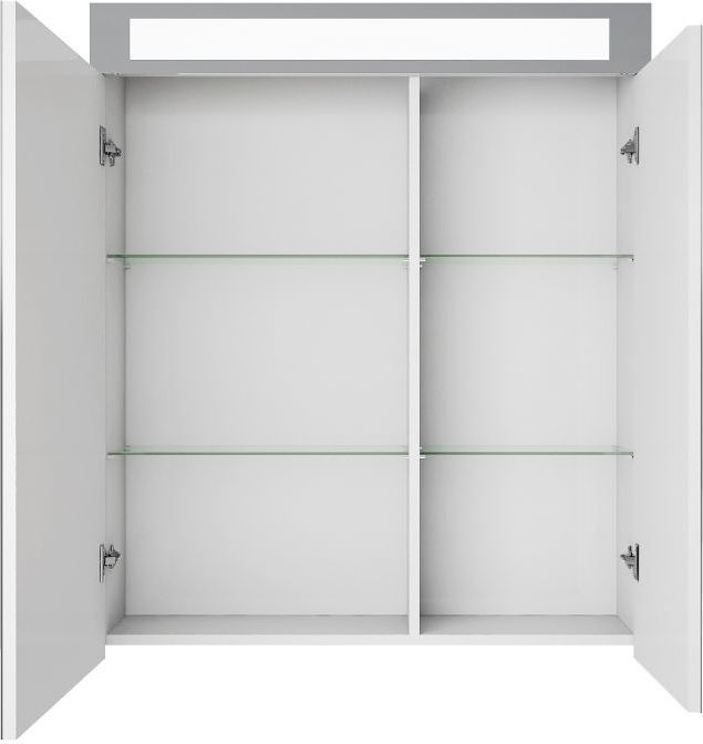 Зеркало-шкаф Dreja Uni 70 см 99.9002, с подсветкой и выключателем, 2 дверцы, 4 стеклянные полки, цвет белый глянец.