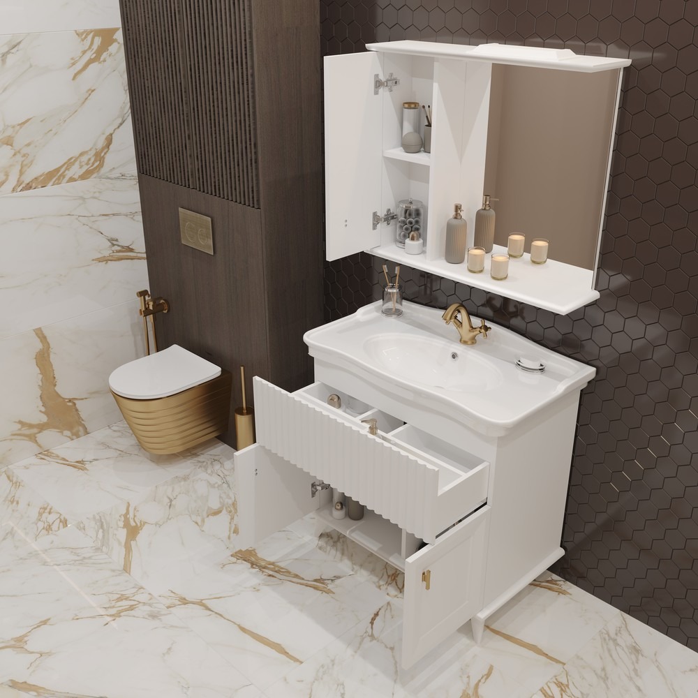 Зеркало-шкаф EvaGold Retro EG010406 с подсветкой 82,4х72,5х20 см, левый, цвет белый глянец.