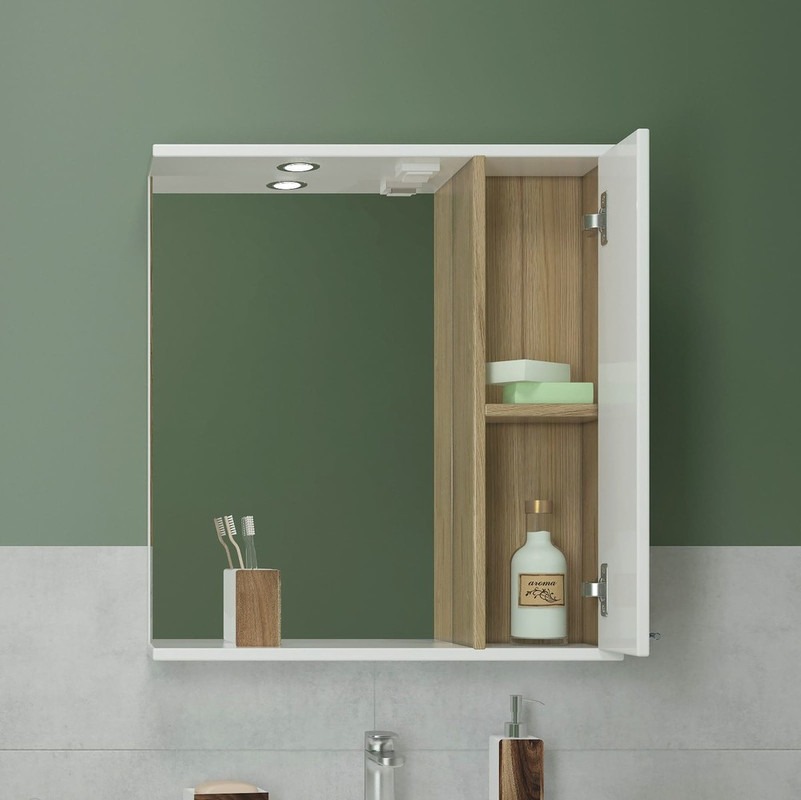 Зеркало-шкаф EvaGold Шимо EG010163 с подсветкой 65х70х19 см, правый, цвет шимо.