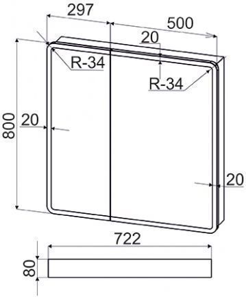 Зеркало-шкаф Mirsant Arena 80 см с подсветкой.