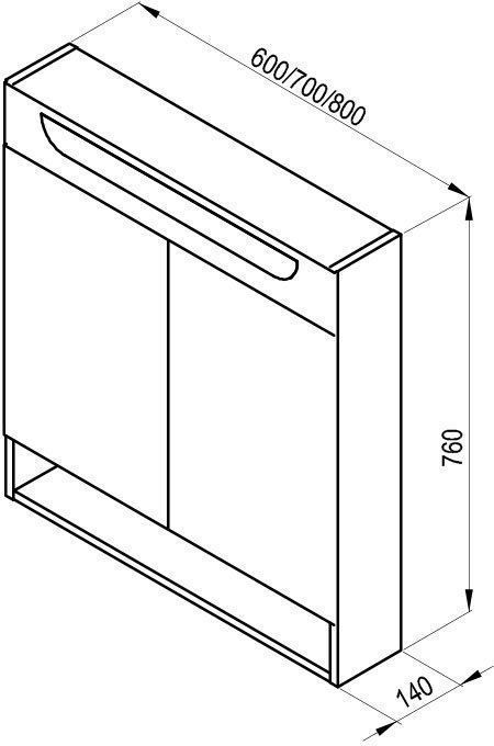 В верхней части он оснащен встроенным светодиодным освещением с подключением к внешнему выключателю. Открывающиеся дверцы шкафа снабжены зеркалами с обеих сторон. Внутри тумбы расположены две стеклянные полки толщиной 4 мм. Мы доставляем тумбу в собранном состоянии.