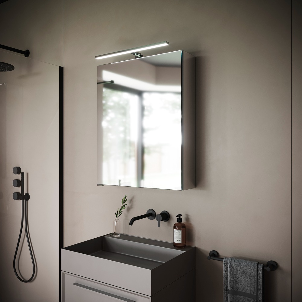 Зеркало-шкаф с подсветкой Sancos Hilton Z600 600х740x148, LED светильник, внутренняя розетка с выключателем.