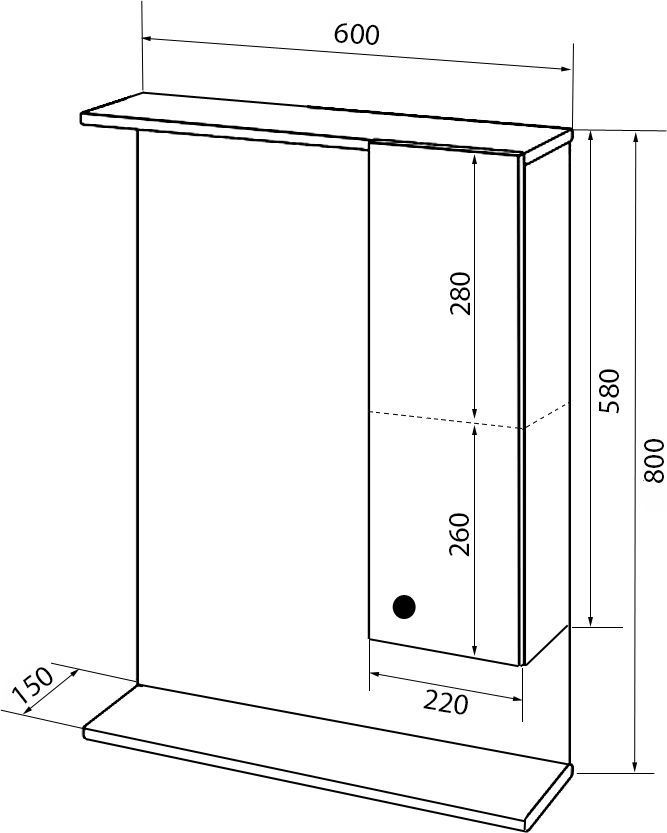 Зеркало-шкаф Стиль Моника 60 см R, без светильника, белый